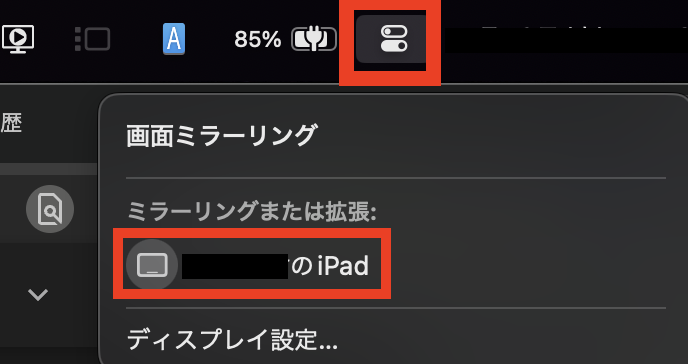 必要に応じて、「画面ミラーリング/ディスプレイ設定」から、MacBookとiPadの配置を調整しましょう。