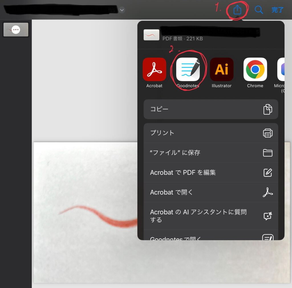 スキャンアプリで撮影した写真を、ステップ②で用意した「Goodnotes」に送ります。